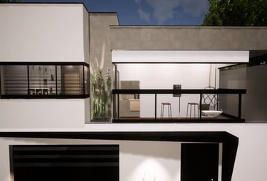 Serviço: Neste projeto, desenvolvemos todos os projetos executivos e complementares elaborados em BIM para reformas e construções. O cliente nos contratou pois havia realizado anteriormente uma obra de reforma sem um projeto adequado, onde nada foi planejado, resultando em deficiências na climatização da fachada e no aproveitamento de cada espaço para integrar uma suíte no piso superior. Para esse projeto, enfrentamos limitações, já que foi necessário projetar sobre a laje construída anteriormente. No entanto, conseguimos criar uma arquitetura mais moderna que valorizasse a fachada principal da casa. A suíte passou a ter funcionalidade com elementos em balanços que proporcionam um ar de modernidade. Todo o projeto foi pensado e dimensionado de forma a garantir que a laje suportasse o peso da nova reforma. Assim, foi definido que a construção utilizaria materiais leves, com a condição de que, ao mesmo tempo, oferecessem resistência suficiente para sustentar o balanço do fechamento da sacada. A solução mais viável foi a utilização de construção seca em steel frame.